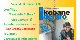 Il 17 marzo 2017, alle ore 17.30, presso la sede della Casa delle Culture, in vico Carnaio 17, a Campobasso, si terrà la presentazione del libro "Kobane dentro", con la partecipazione dello scrittore Ivan Grozny Compasso. Successivamente, alle ore 19.00, l'Associazione Primo Marzo intitolerà la sala delle riunioni della Casa delle Culture a Leo Leone, a poco più di un anno da [...]